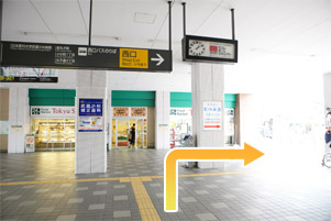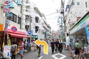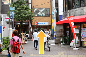 2. 駅を右方へ出ますと正面に「住吉書房」が見えますので真っ直ぐお進みください。
